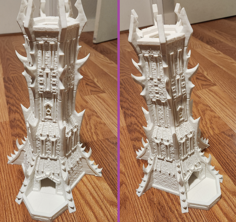 This was the single longest print I've ever done in one sitting. This was only 3 pieces total, but I ran into some interesting geometry issues with the base of the tower and my PC did the math of it taking 22.3 hours!